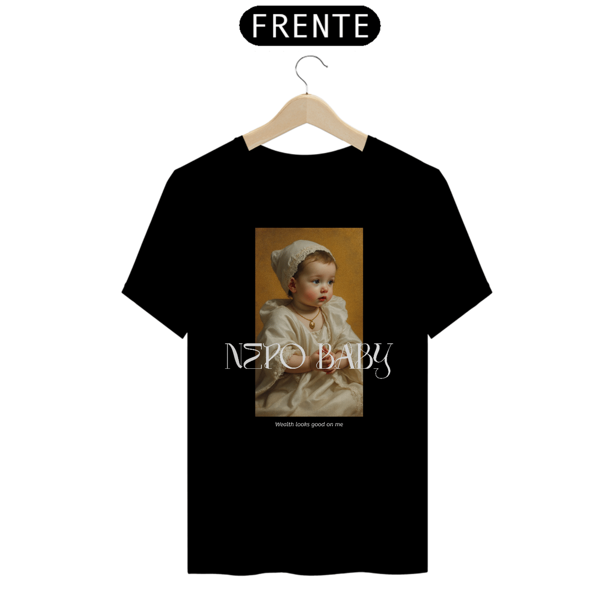 A estampa combina arte com o humor contemporâneo, destacando um "nepo baby" de forma única e cativante. Confeccionada em 100% algodão, proporciona uma experiência super macia e confortável, ideal para o uso diário em qualquer estação. Criada para todos, o design unissex adapta-se a variados estilos e preferências, permitindo uma inserção fácil e versátil em qualquer conjunto.