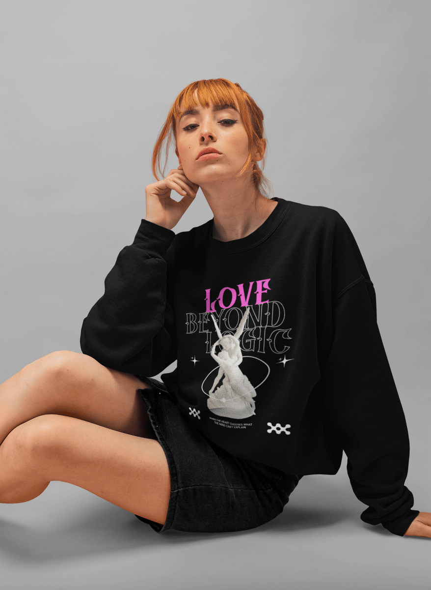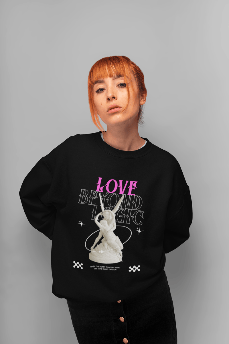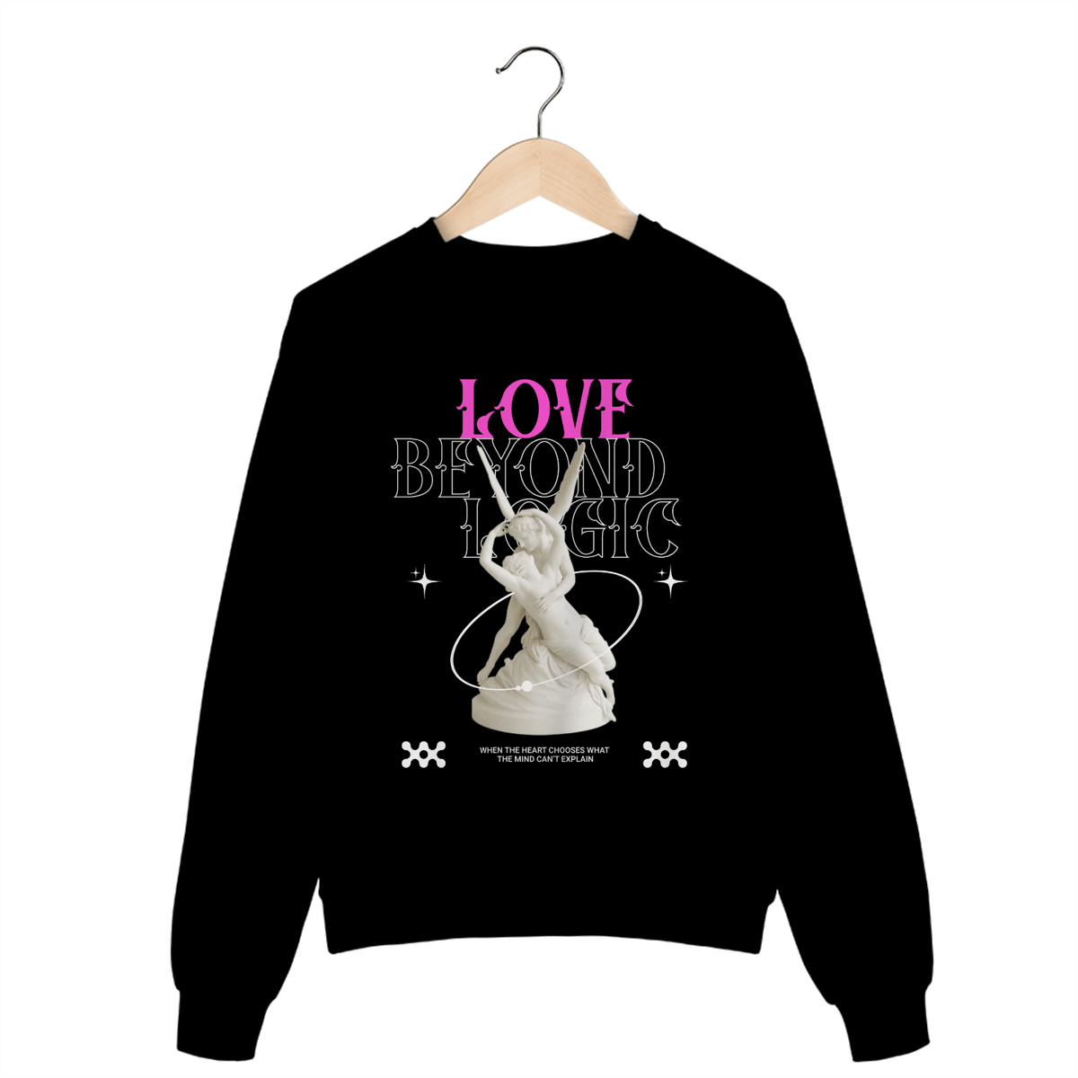 A estampa? Uma reinterpretação da obra-prima de Antonio Canova, a icônica escultura “Psique Reanimada pelo Beijo do Cupido”, acompanhada da frase que diz tudo: “Love Beyond Logic”. Um lembrete visual de que o verdadeiro amor vai além do racional, conectado ao eterno e ao sublime.