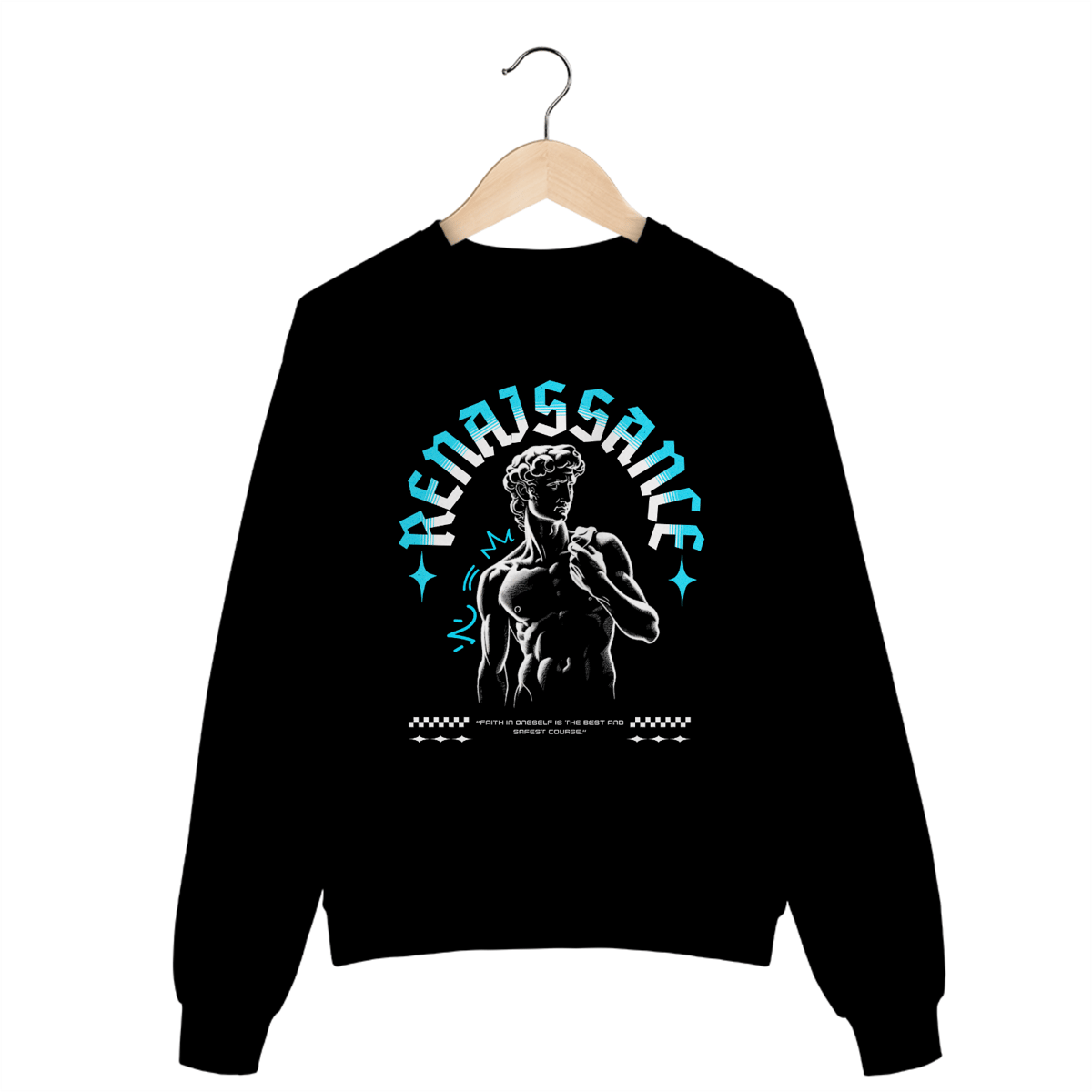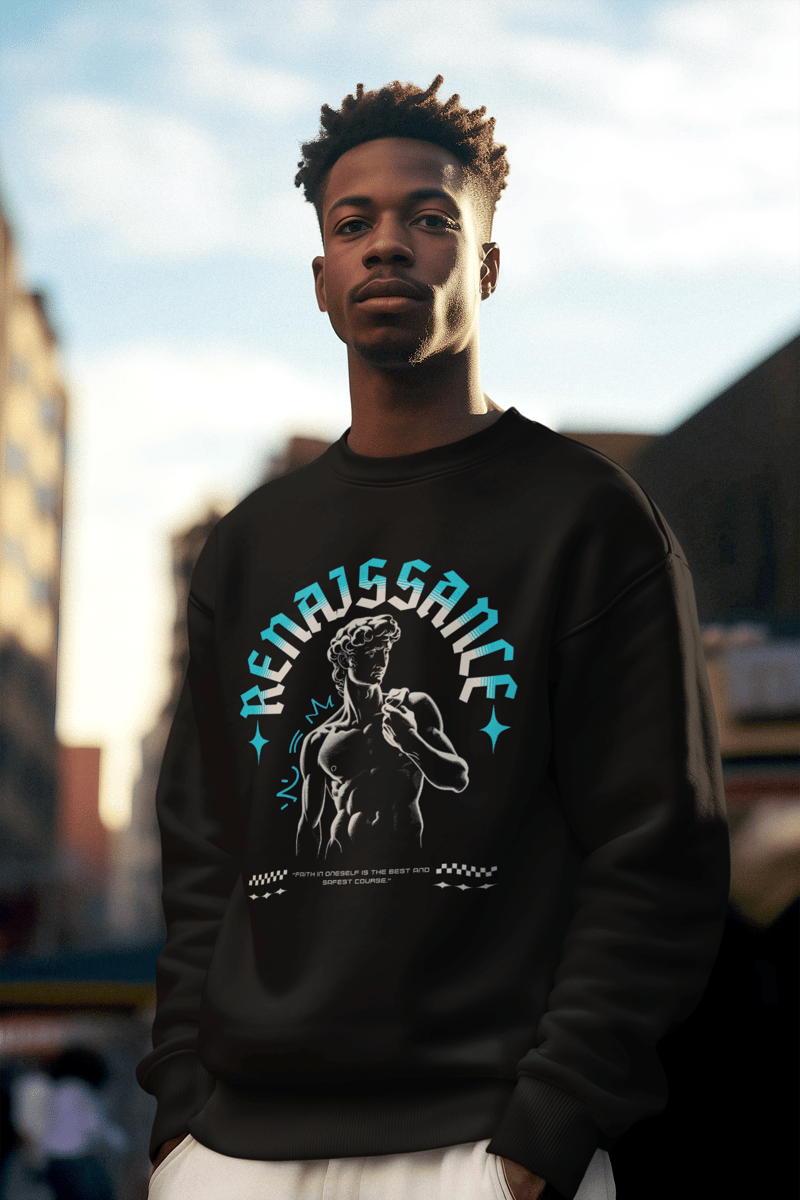 Apresentamos o moletom com a estampa do icônico David, um símbolo eterno de força e beleza reimaginado para os dias de hoje. Esta peça oferece uma fusão perfeita de tradição clássica e modernidade casual, ideal para quem deseja marcar presença com estilo refinado.