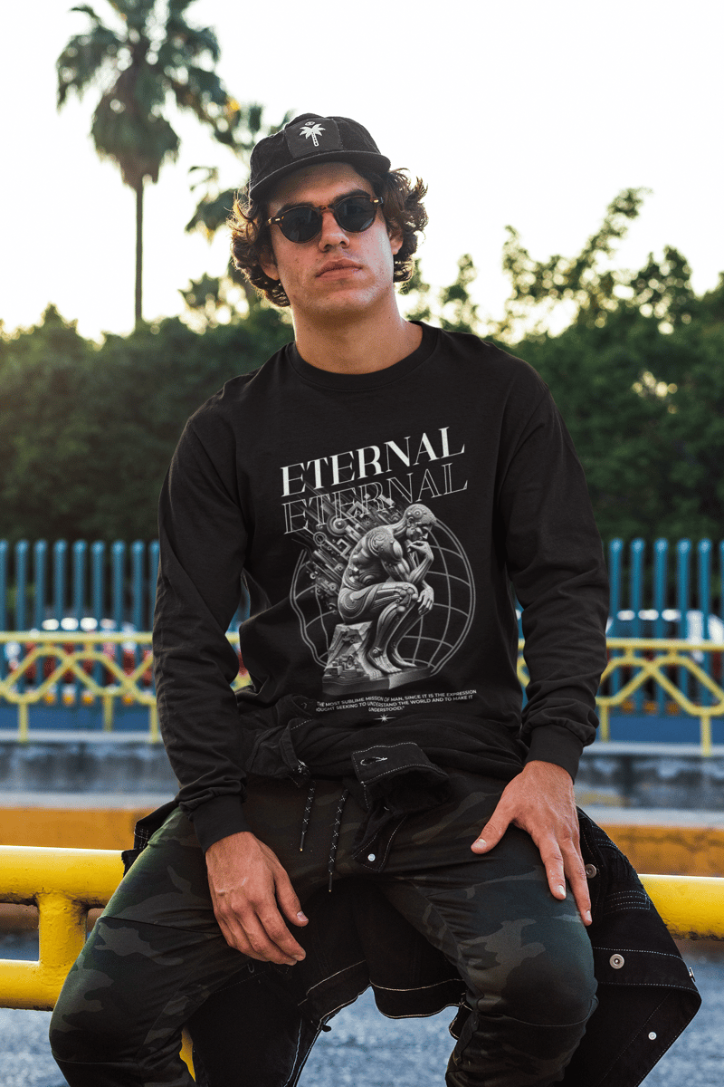 Descubra o moletom que captura a essência filosófica de "O Pensador", uma obra-prima que combina a tradição clássica com um toque moderno e casual. Esta peça é ideal para aqueles que buscam mais do que apenas uma roupa: eles procuram uma expressão de intelecto e sofisticação diária.
